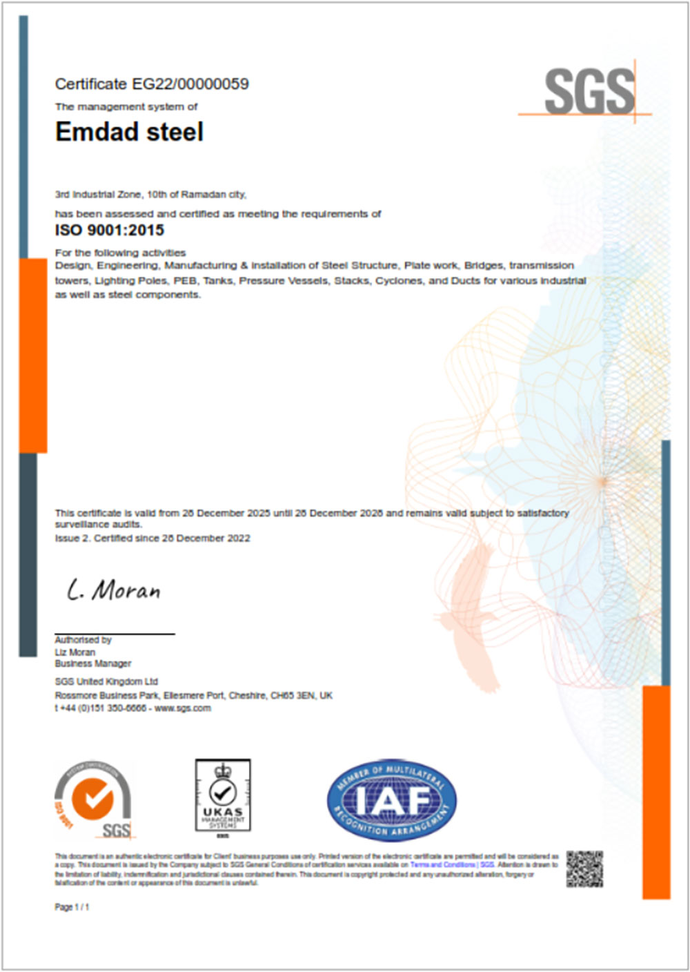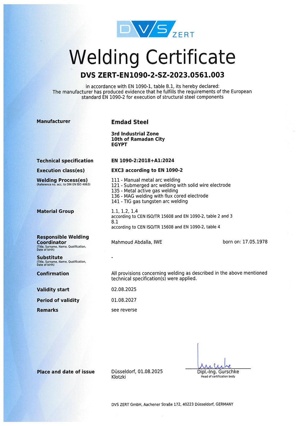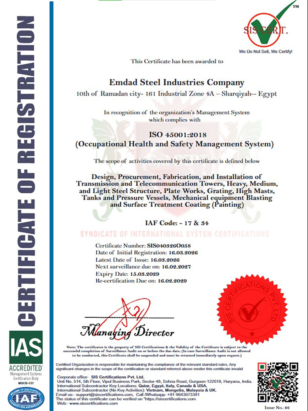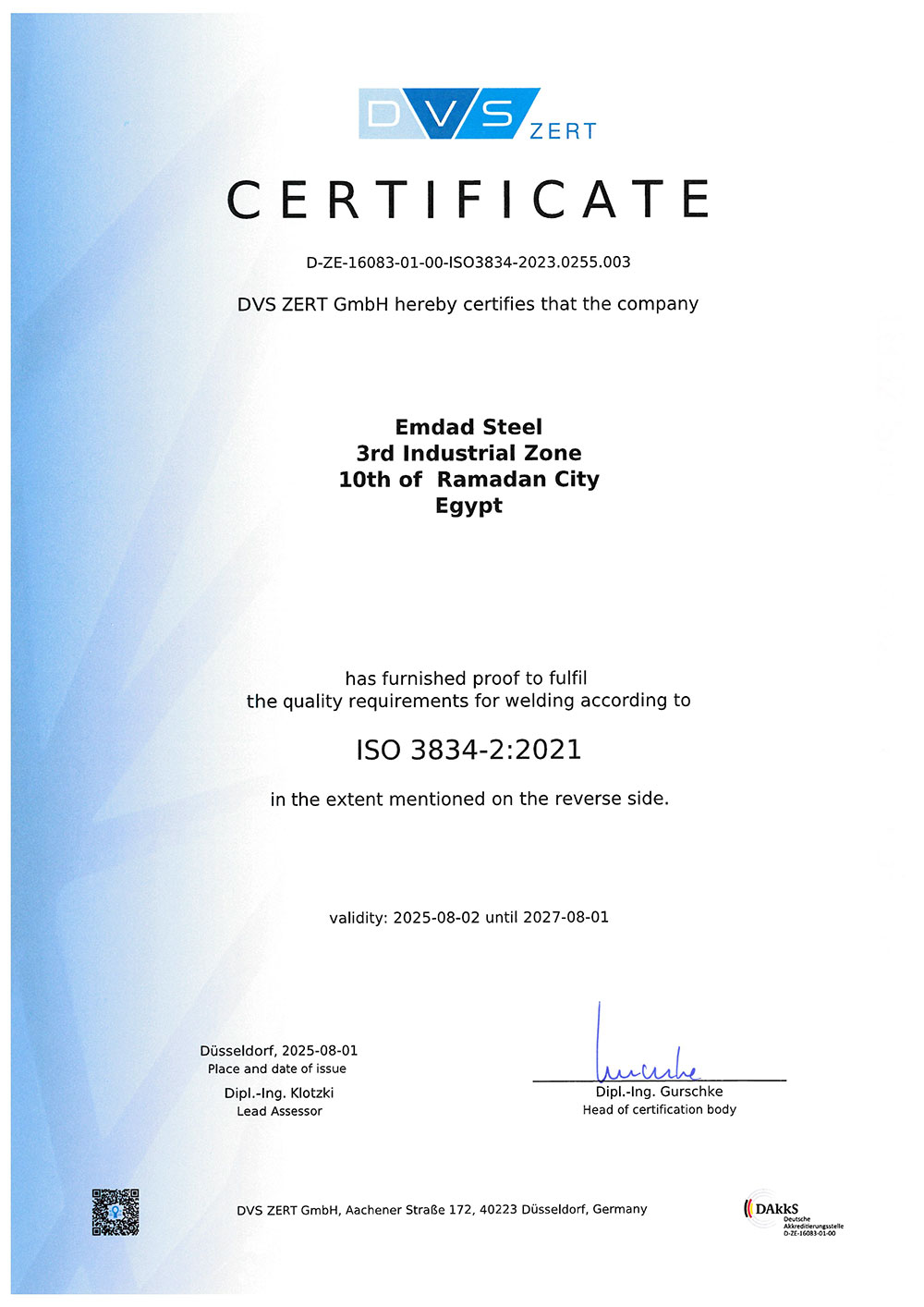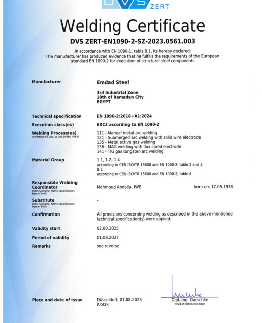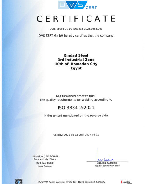 Emdad started the manufacture journey at 2020 by our first factory at 10th of Ramadan with 30,000 SQM and now our working area reached up to 80,000 SQM in addition to our own Galvanization plant.